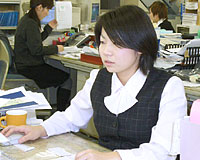 吉岡で唯一、女性用の下着の生地や商品の輸出入を行っているのが貿易部。取引先は海外では香港や韓国、国内ではトリンプなどですが、それだけに部内では英語、広東語、韓国語が飛び交い、支店や代理店と頻繁に電話やファックス、メールがやりとりされます。キャリアを積むと香港や韓国へしばしば出張に出かけることになります。そうした仕事を通して感じたことは「生地は生き物だ」ということ。配送中に生地の全長が変わることもあれば、色がぶれたり、ちがって見えたりすることがあります。それをどうコントロールして、お客様に納得していただくか。それがこの仕事の難しいところでもあり、面白いところだと思います。まだまだキャリアの浅い私ですが、いずれはグローバルに活躍したいと思い、さまざまな経験を積んでいる毎日です。 |