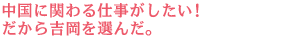 学生時代、中国語を専攻していたこともあり、中国に関わる仕事をしたいと思っていました。そこで上海、香港に拠点を持ち、アパレルのニーズに対応している吉岡で働きたいと考えるようになったのです。現在は本社の商品課で中国デリバリーの担当をしていますが、「一つの契約を完了させるために、実にたくさんの人が携わり、手間と時間をかけているんだなあ」ということを実感しています。そして、キャリアの短い私が中国への窓口になってオーダー業務を任されていることの責任の重さもひしひしと感じています。もちろん、それはやりがいと背中合わせなのですが。まだまだ経験が浅く、覚えることが山ほどある私ですが、早く営業さんから安心してオーダーを任せてもらえるようになりたいと思っています。 |